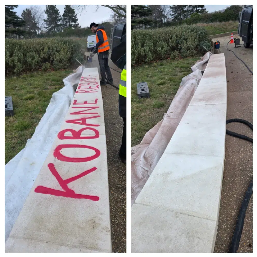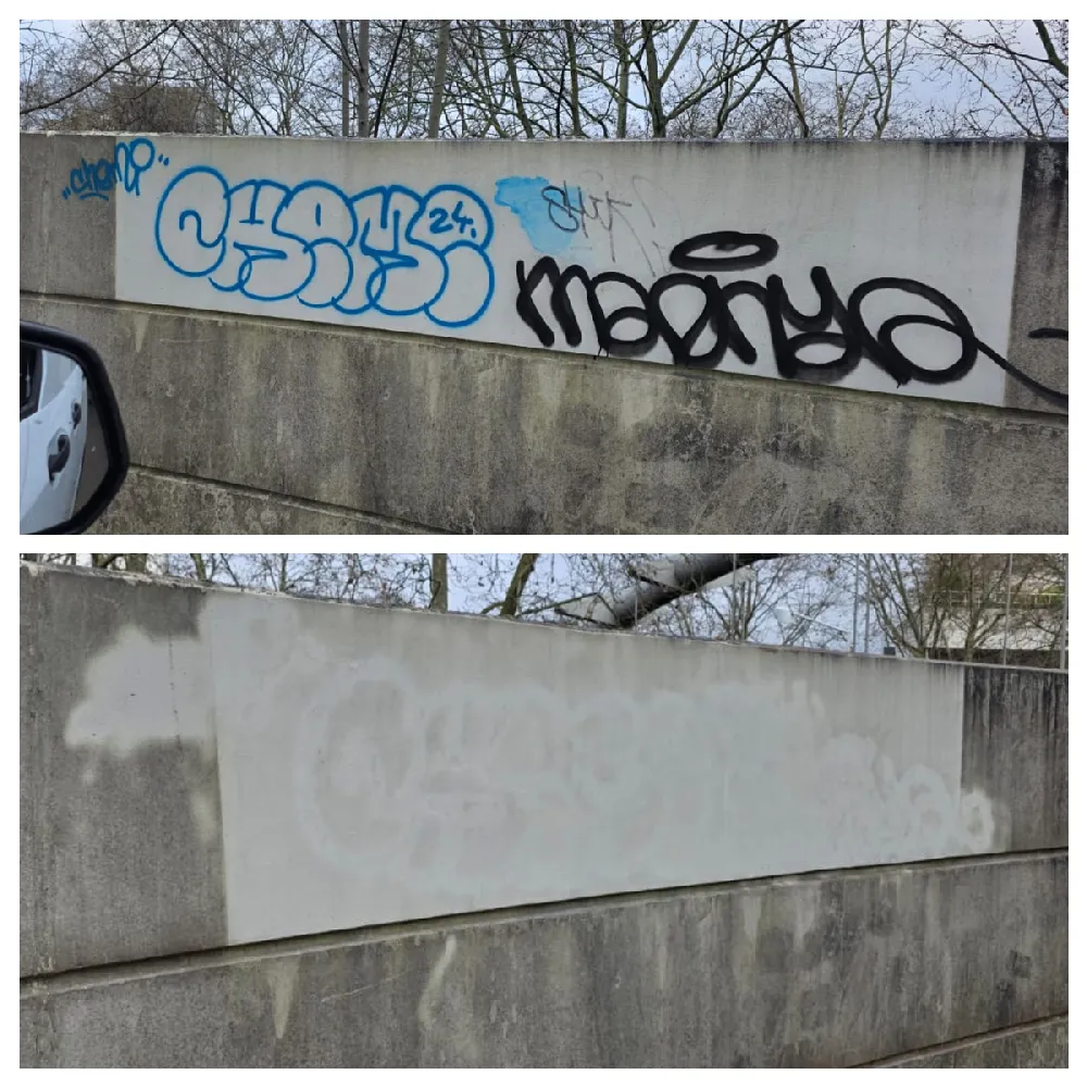 Découvrez en images le travail de nos équipes : façades débarrassées de leurs tags en moins de 24h, murs en pierre restaurés par aérogommage, terrasses bois rénovées, moquettes récupérées après des années d’usure…